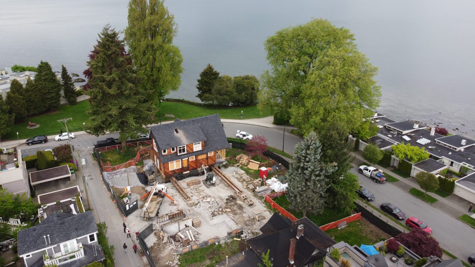 Zebiak worked in conjunction with ETRO construction to lift and move a heritage house on a very unique piece of property near Kits beach on Vancouver’s prestigious Point Grey Road. The house moved 30 feet North and 80 feet West to the absolute corner of the property. This movement allowed for the subdivision of this property into 5 lots (1 with Heritage House, and 4 new lots for new construction).