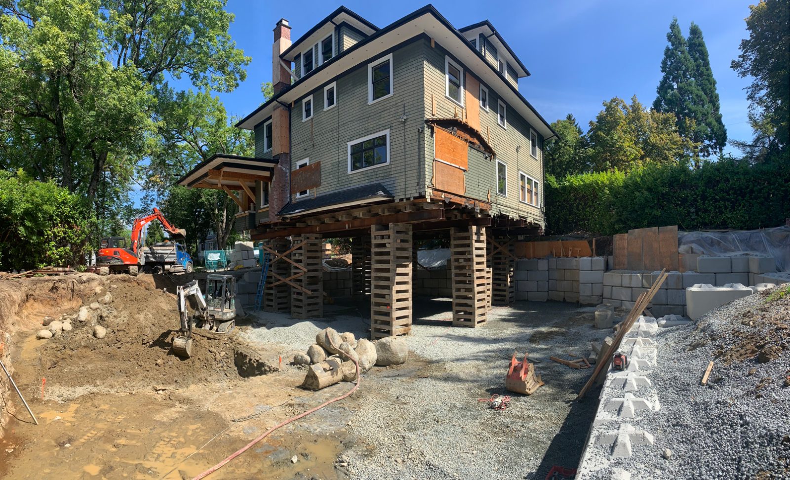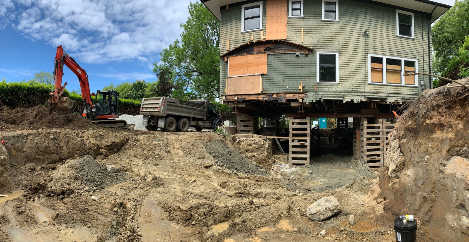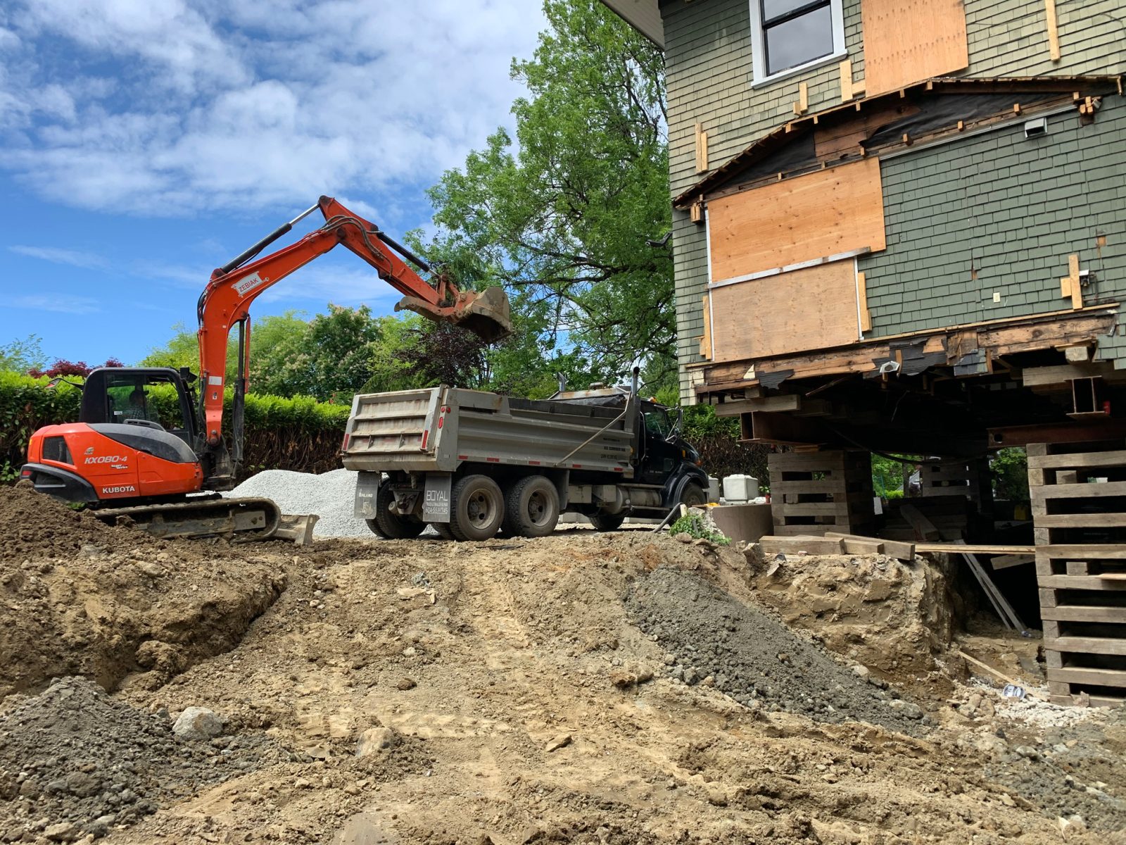 Zebiak supplied a full range of services on this Vancouver project. The excavation scope of work really stood out on this one; an underground stream was encountered running through the property. This made excavating extra challenging. Zebiak’s experienced crew excelled in keeping this site tidy and organized while hauling out over 200 dump trucks loads. We worked in conjunction with engineers to design and install a LockBlock SOE system to secure the East and South sides of this excavation that were getting eroded by the constant flow of the underground stream.